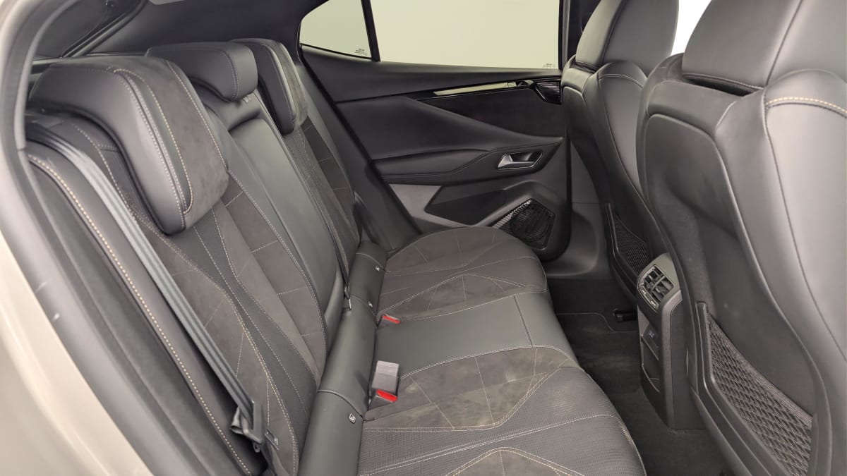 intérieur alcantara noir : planche de bord en alcantara ciel de pavillon clair sellerie en tissu tressé basalte avec alcantara et toile ds décors de panneaux de porte chrome guilloché volant cuir fleur mistral console en toile ds noir basalte panneaux de porte en alcantara et toile ds noir basalte