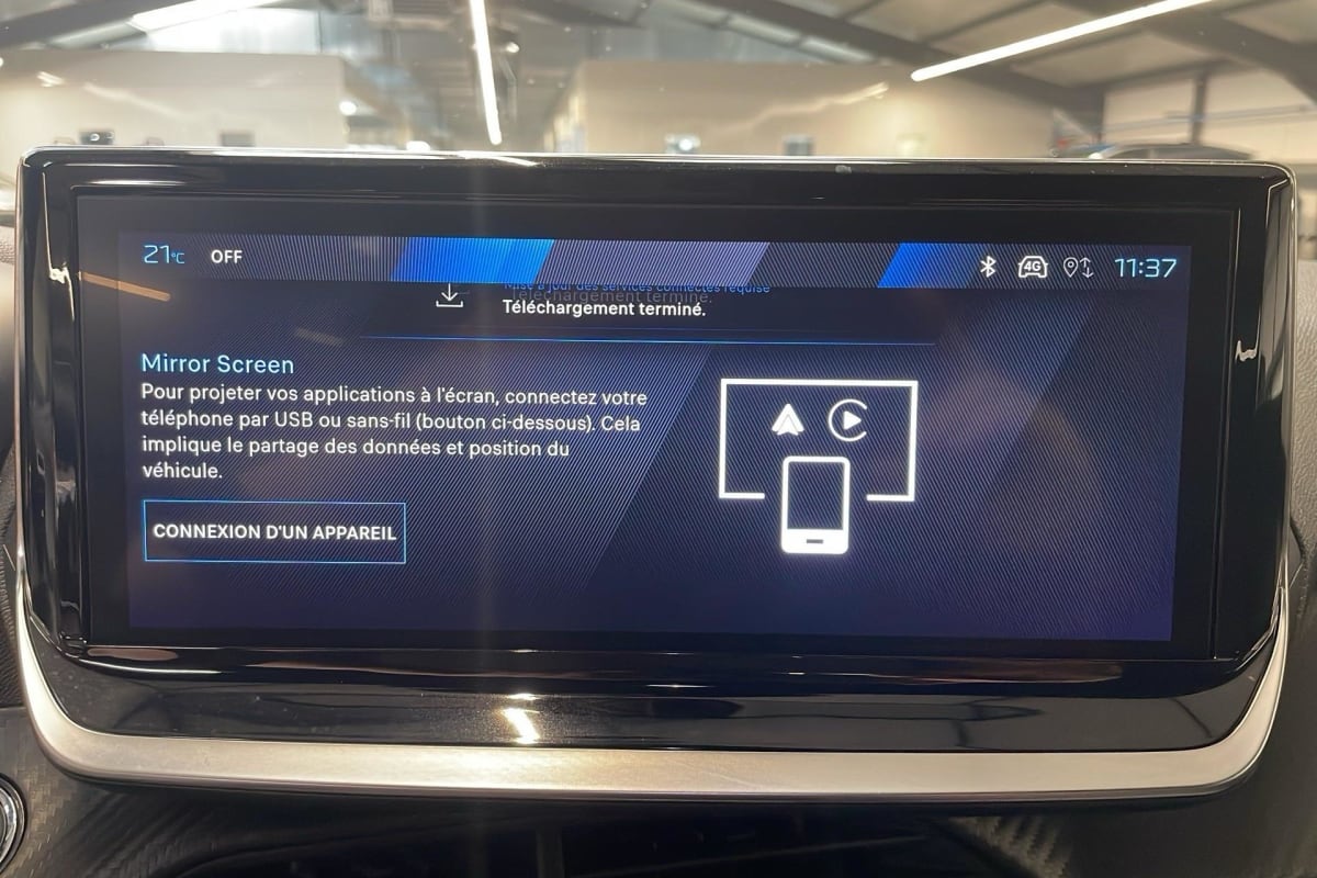 peugeot i-connect: radio dab avec écran tactile couleur personnalisable 10" hd, bluetooth, mirror screen sans fil (apple carplay/android auto), wifi, 1 prise usb type c ( data+charge) et 1 prise usb type c (charge) sur console av