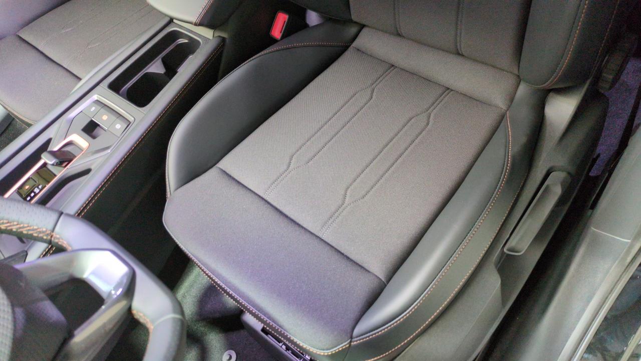 design intérieur pure - sièges bimatière textile et tep noir asphalte - planche de bord noire surpiquée avec inserts dark alu - contre-portes en tep noir surpiqués - sièges conducteur et passager avec réglage manuel en hauteur et lombaire