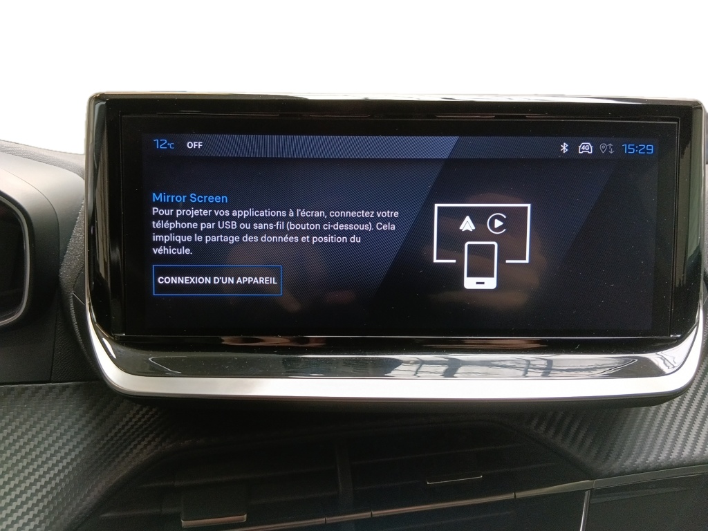 prise 12v et rangement pour smartphone en façade centrale